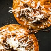 - Shredded cheese: Traditional Mexican melting cheeses like Oaxacan (quesillo), Chihuahua, and Asadero are the best options, but you could also use Monterey Jack or Mozzarella if you can’t find those near you.