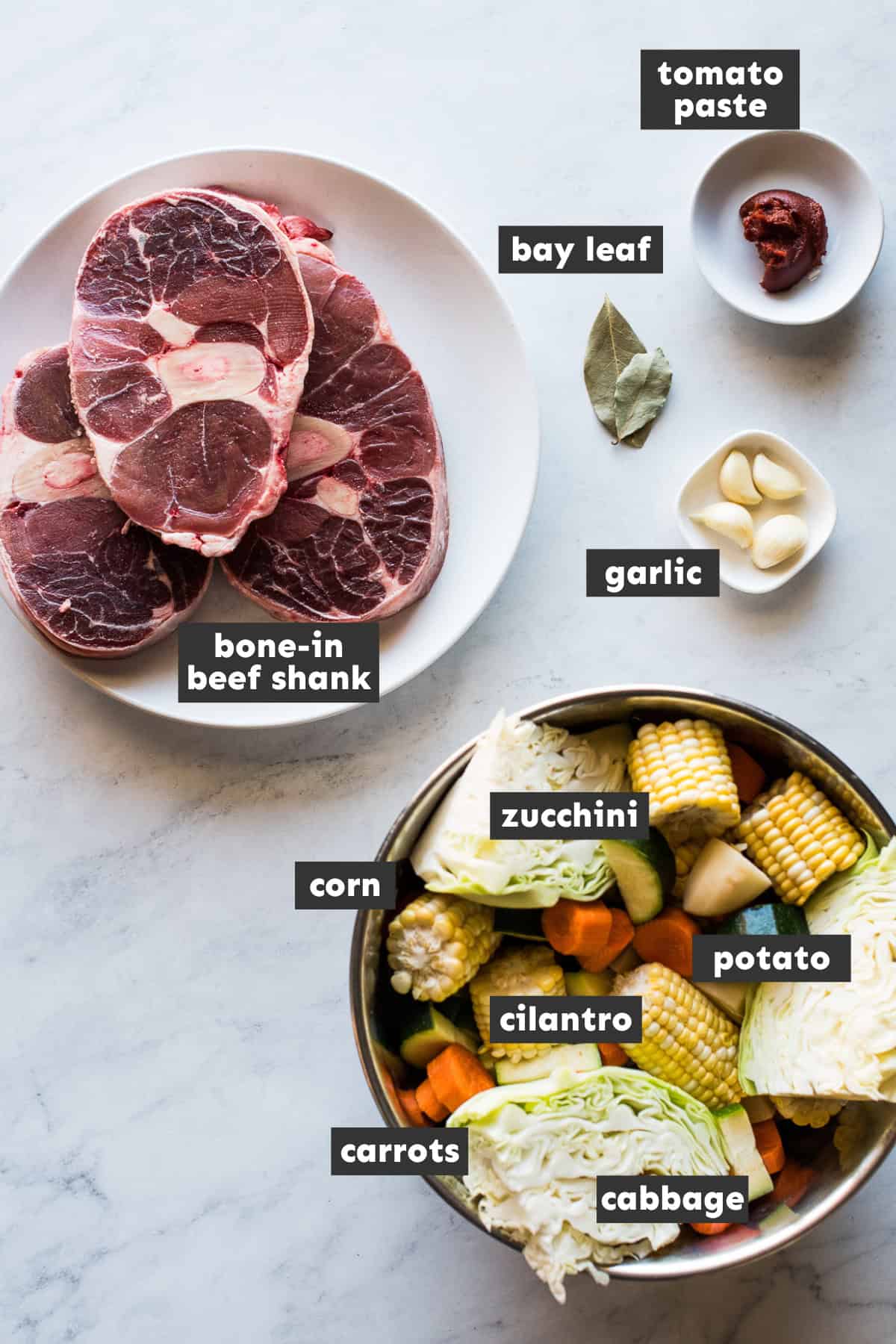 - Garlic, bay leaves, tomato paste, cilantro: Simple but essential for a flavorful broth.