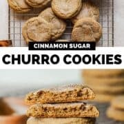 These churro cookies are soft, chewy, rolled in plenty of cinnamon sugar, and incredibly easy to make. All the cozy cinnamon-sugar flavor of churros, but without the frying, piping, or mess!
