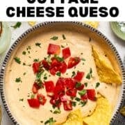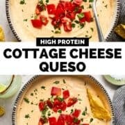 Cottage cheese queso is exactly what it sounds like: a quick queso-style dip made by blending cottage cheese until smooth, then warming it up with seasoning and shredded cheese.