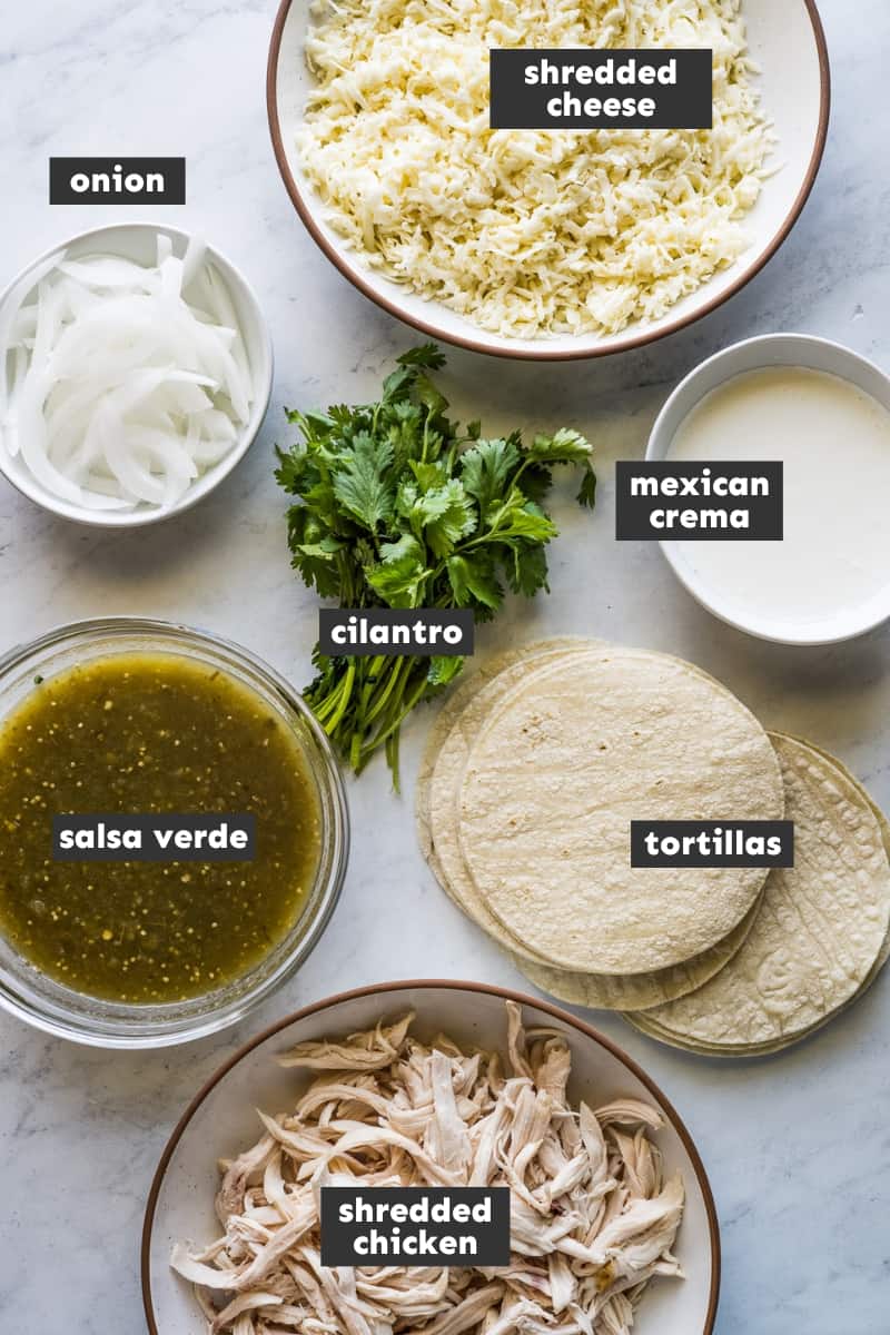 - Salsa verde: You can make your own homemade salsa verde or use your favorite store-bought salsa verde to save time.