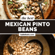 Growing up, my mom would make a big batch of pinto beans and use them throughout the week in recipes like sopes and burritos, but my childhood favorite was always pinto beans by themselves in a large bowl topped with queso fresco, cilantro, and plenty of fresh flour tortillas.