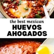 Huevos rancheros are fried eggs served on tortillas with salsa on top. Huevos ahogados are poached directly in the salsa. The eggs cook in the sauce, which makes them extra flavorful and saucy.
