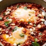 If you’re the type of person who puts salsa on your eggs (hi, same), then cooking the eggs in the salsa just makes sense. The eggs gently poach right in the simmering sauce, soaking up all that deep chile flavor while the yolks stay perfectly runny.