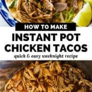 - Keep it warm. Use the Instant Pot’s warming setting while assembling your tacos so the chicken stays hot.