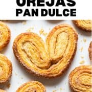 Buttery, flaky orejas (aka Mexican palmiers) rolled in cinnamon sugar and baked until crispy and caramelized. The perfect easy pan dulce to make at home!