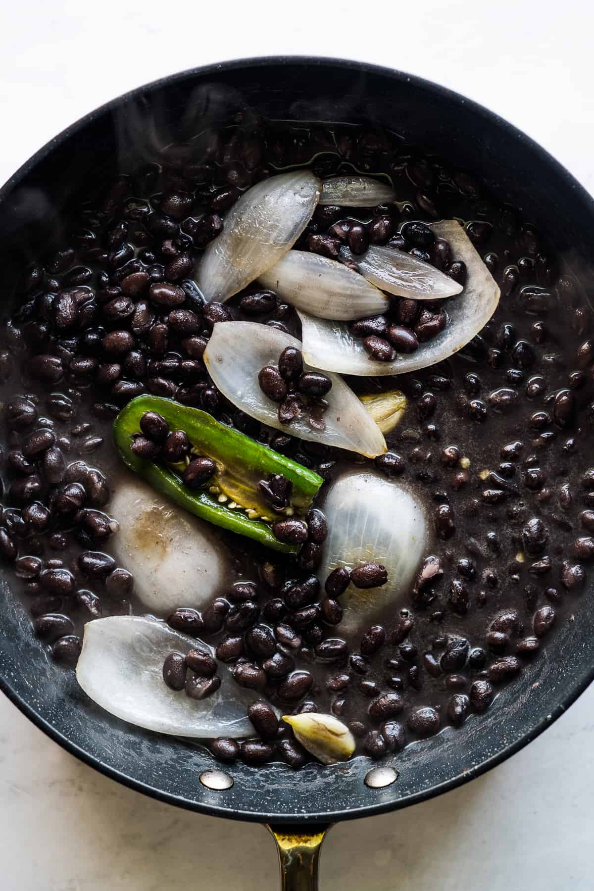 - Add the black beans, bring to a simmer, and season with salt to taste.